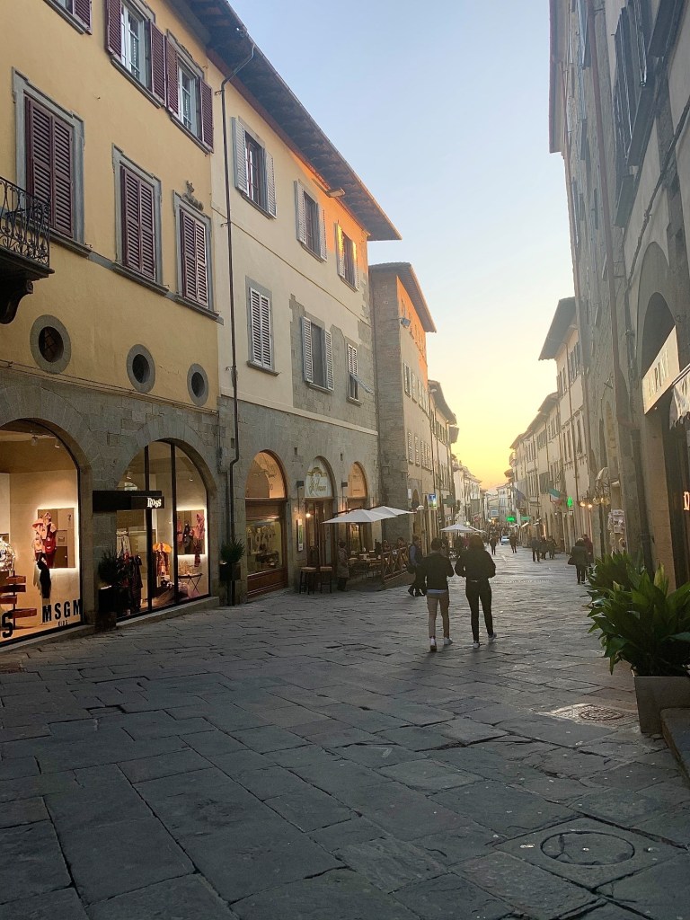 Corso Italia, one of the main streets of Arezzo, is the perfect area for shopping, dining, and socializing. From clothing to antique stores, there is a wide range of businesses on the street. On late afternoons, the area is filled with Arentines and travelers taking passegiatas. Two of our favorite cafes – Coffee O’Clock and Caffè Pascucci – are also on this street. Luckily for us, our school is located one minute away from Corso Italia, so we spend most of our study breaks walking in this area. The street begins near the Fortezza Medicea, a military fort built in the sixteenth century, and it ends near the train station. Hence, Corso Italia cuts through the middle of the historic center of Arezzo.